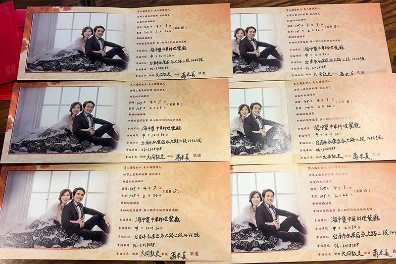 「看日子」是請算命仙仔挑選適合兩個人舉辦婚禮的日子。算命仙仔是看新郎新娘的名字和出生年月日及時辰來算出,如果是漢字圏以外的外國人該怎麼辦呢?或者是有時差的話,是以哪個時刻為基準?雖然滿腦子疑問,總之婚禮決定在2016年4月3日舉辦。甚至,到戶政事務所辦理結婚登記的時刻也被指定好。可是,就在當天等候登記時,突然發現有東西忘了帶,趕緊衝回家拿。幸好,千鈞一髮趕在指定時刻內辦理完畢。