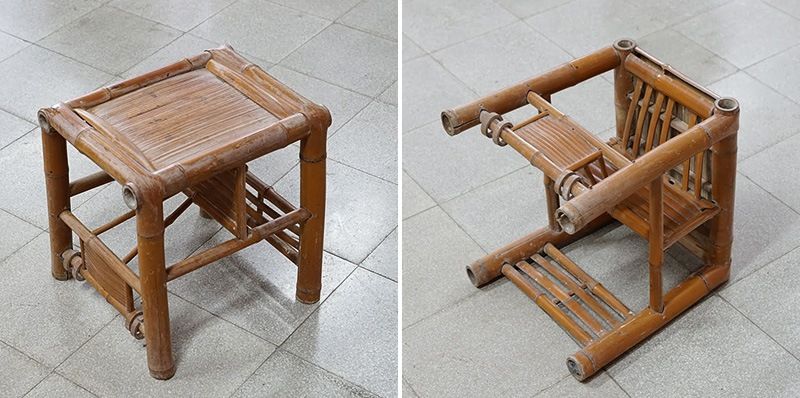 而稱為「母囝椅」(臺語:bú-kiánn-í )的兒童座椅也很有趣,幼兒可以抓住的前側部分,放進切成圓環的竹材,可以旋轉滾動,成為小孩玩耍的巧心設計。隨著小孩成長,變換方向的話,還能當作兒童座椅。由於並未使用鐵釘,完全由竹材製作而成,非常堅固安全,讓人不禁佩服,這正是柳宗悅所提倡的「器用之美」。