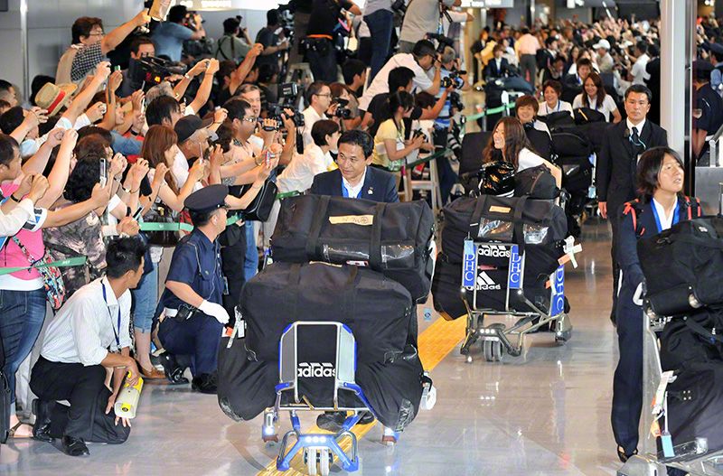 出發前往德國參賽時,聚集到中部機場的記者僅有10人,球迷則是踪影皆無。然而在大會結束回國的時候,成田機場匯集了400多球迷和260名新聞記者,擁擠非凡。前鋒安藤梢感慨地回顧說:「1999年世界盃的時候沒有一個人來接我們。」球隊團體被授予了國民榮譽獎。熱潮在持續,選手們不僅閒暇時要參加廣告攝影和電視節目拍攝,訓練的時候也常常要接受采訪。澤穗希這樣說道:「以往的女子足球備受冷落,希望今後多少能夠引起人們的一些興趣。」她似乎要把失去的時光搶奪回來一樣,不辭辛勞全力以赴地為女足做著宣傳。