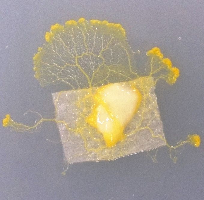 2008年獲得認知科學獎的北海道大學中垣俊之教授等人組成的團隊研究的是「黏菌」。這是一種像黏膠一樣黏糊糊的生物,根本看不出來能有什麼特別用處。但中垣教授及其團隊成員證明了一種叫做「多頭絨泡菌(Physarum polycephalum)」的黏菌可以穿越迷宮。黏菌這種看起來極為簡單的生物竟然能夠穿越迷宮,實在令人感到驚訝,而發現這一點的研究人員的思維也可謂非同尋常。那麼黏菌到底是如何穿越迷宮的呢?