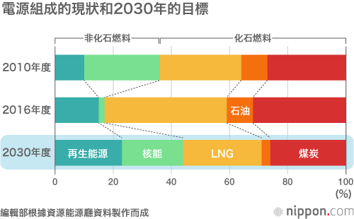 後來,自民黨重奪政權,在核電廠事故後首次制定的第四次能源基本計劃(2014年)中,將核電定位為「重要的基本負載能源」,重新回歸了運用核電的路線。另一方面,計劃也明確提出,要通過進一步引入再生能源和提高煤炭等火力發電的效率,「盡可能地降低」對於核電的依賴度。沒有關於改建和新增核電廠的表述,這是充分顧及到了反對發展核能的民意環境。