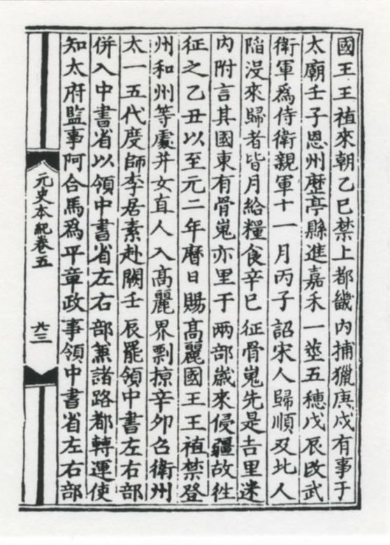 圖1 《元史》第5巻記載,忽必烈統治時期的至元元年(1264年)11月,蒙古軍征討了骨嵬(右起第4-6行)