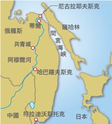 圖2 明朝在阿穆爾河河口地區的奴兒幹(現在的蒂爾村)設置都司並修建了永寧寺。居住於薩哈林的苦夷人也必須向(明朝)都司奉納貢品
