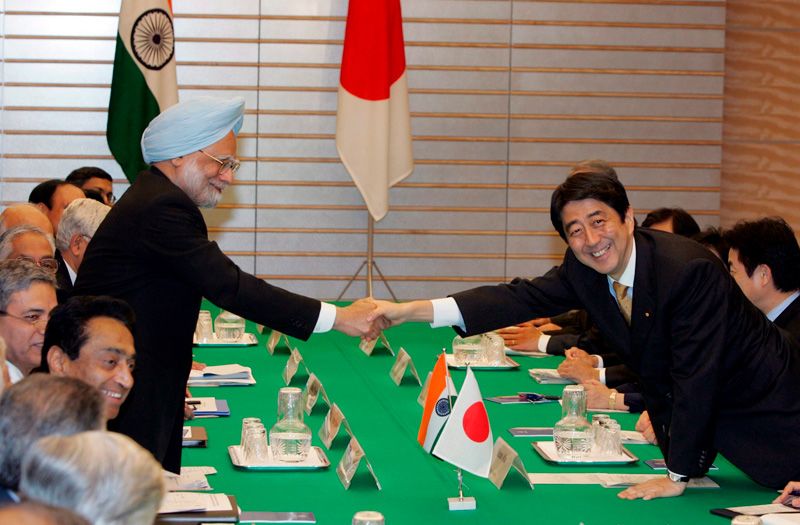 此外,2010年12月,日美韓三國外長在華盛頓舉行會晤,就北朝鮮發動的延坪島砲擊事件的對策進行協商。在此,“擁有共同的民主主義、市場經濟等基本價值觀的日美韓三國,確認了對區域性、全球性共同課題進行緊密合作”。同時,2007年8月安倍首相訪問印度,明確表明了在中國日益崛起之中,擁有共有價值的日本和印度進行戰略合作的姿態。訪問期間,安倍首相與曼莫漢·辛格(Manmohan Singh)總理發表了共同聲明,謳歌兩國共享自由與民主主義等的“普世價值”。在過去的5年中,日本與美國、澳大利亞、印度、韓國等亞洲太平洋地區擁有共同普世價值的各國加強了合作關係。這被認為是針對中國的軍事崛起,具有考慮戰略平衡的對抗意義。