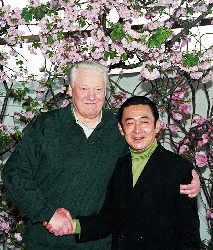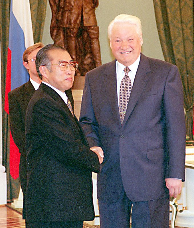 莫斯科日俄首腦會談。小淵惠三首相(左)與葉爾辛總統(1998年11月16日,攝影:產經新聞社)