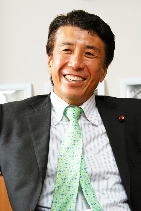 1959年生於東京。東京大學畢業後進入通商產業省(現在的經濟產業省),擔任過能源行政、中小企業行政、資訊科技(IT)等的政策制定工作。 1994年參與日美汽車談判,曾任通商產業大臣秘書,後派往埼玉縣當副知事。 2006年為進入政界而退職。 2009年8月在南關東選區的比例選區中首次當選。著作有《從轉落的歷史中看到什麼》(筑摩文庫)。