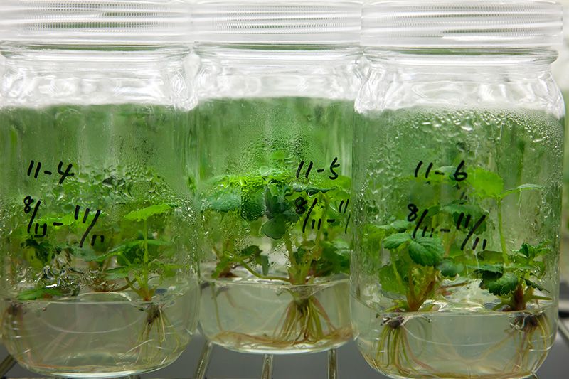 這座植物工廠栽培引進了犬干擾素基因的草莓,用於生產犬類牙周病治療藥物。干擾素是指細胞受到細菌或病毒感染後由細胞分泌出的蛋白質。之所以使用草莓,是因為在草莓的組織培養和栽培方面擁有豐富的經驗,而且,草莓無需通過種子繁殖,可以通過根、莖、葉等營養器官進行營養繁殖。工廠1年可以生產300kg草莓,由此可以生產出足夠100萬隻犬使用的干擾素。