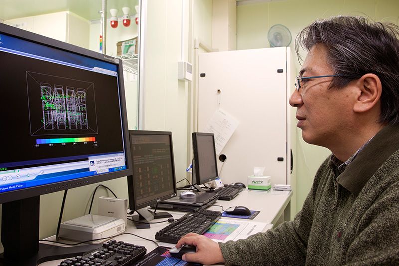 植物工廠的開發工作始於2005年,除了負責照明和空調等硬體設施的設備製造商外,製藥廠商和農業團體等也參與其中,形成了一個由「產學官」(指企業、大學等研究機關和政府等行政機關——譯註)共同推進的項目。2007年1月竣工後,開始了植物栽培工作。此後,松村組長及其他研究人員時刻監控著植物的生長狀態和設施的運轉情況。植物工廠每隔一分鐘就會傳來培育室內的數據訊息。他們參考海量訊息,不斷進行改善,使草莓的栽培工作逐步走上了正軌。