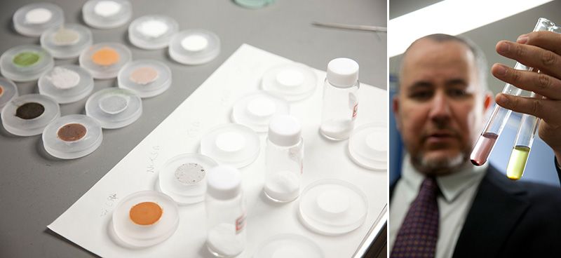 吸附材料的顏色隨吸附的物質不同而變化。除了針對放射性物質的吸附材料外,謝里夫高級研究員還開發出了針對各種金屬的吸附劑,它已作為飲用水中有害金屬的淨化劑得到了應用
