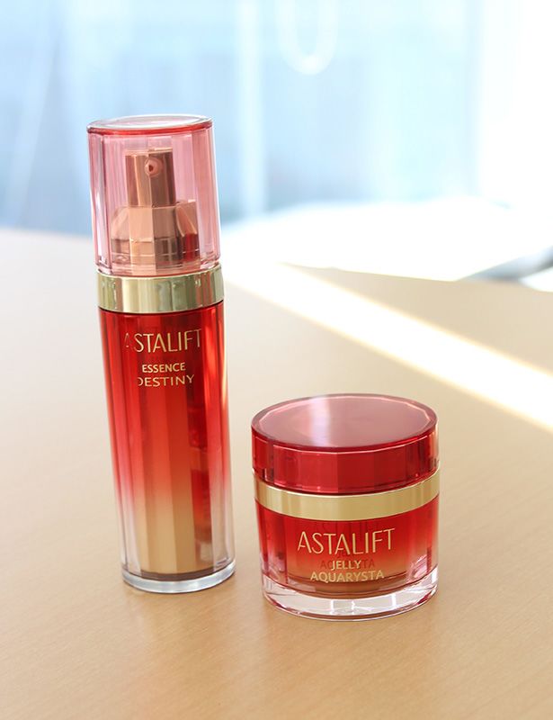 被稱之為「ASTALIFT」兩大當家產品的「ESSENCE DESTINY」精華液(左)和「JELLY AQUARYSTA」滲透還原精華