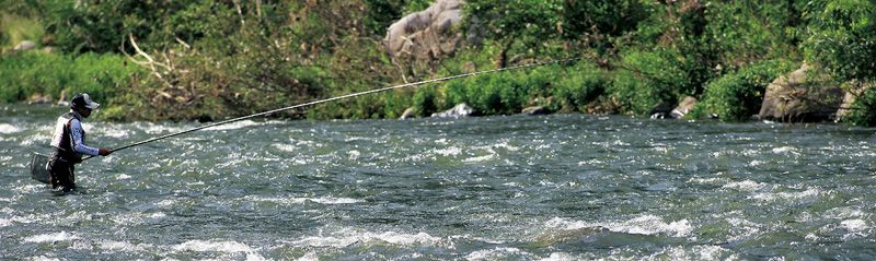 碳纖維增強塑膠(CFRP)製作的Daiwa釣竿究竟有多稱手?只要拿在手上試試看,立刻就能明白。最輕量級的香魚釣竿,雖然有9m長,但是重量只有175g。眼見的長度和手握的重量甚至會讓你產生「不相配」的困惑感。而且,釣竿的前端不會下垂,整根竿體很有張力。比較一下重量的話,同樣的長度,初期的碳素釣竿是300g以上,之前的玻璃纖維釣竿要500g以上。
