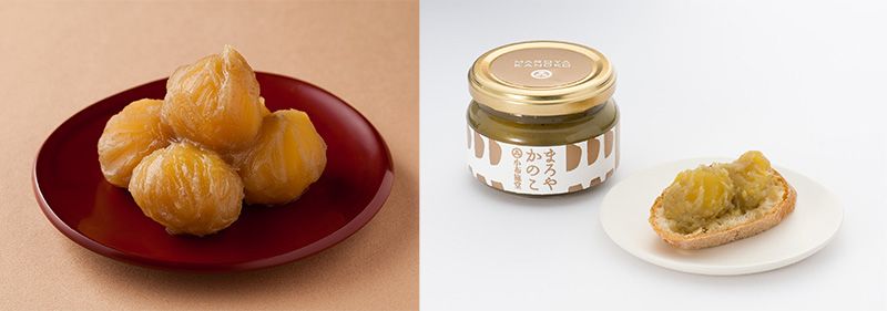 1819年(文政2年),100%以栗子為原料製作出來的「栗子羊羹」誕生了。1892年(明治25年),在栗子餡中加入栗子蜜餞的「栗子鹿子餅」也創作了出來。栗子點心在明治時代被做成了罐頭食品,成為了一整年都可以吃到的產品。