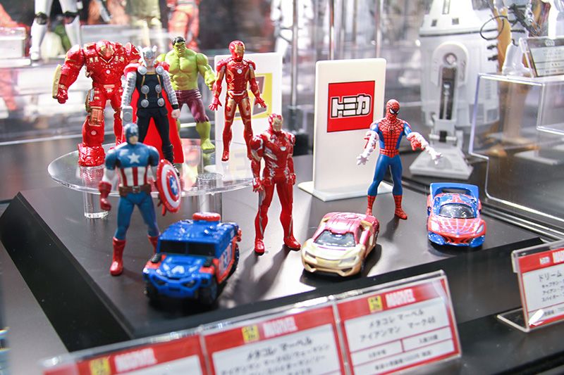 以蜘蛛人、鋼鐵人等美國漫威公司的超級英雄為題材的人物模型和小轎車,出現在TakaraTomy公司的「Metal Figure Collection」和「TOMICA」系列中