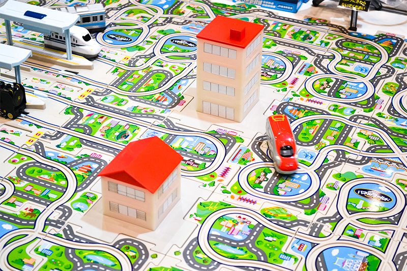 「Panel World Go! Shinkansen series」(增田屋)。在拼圖零片組拼成的軌道上,可以行使新幹線和蒸汽機車的模型