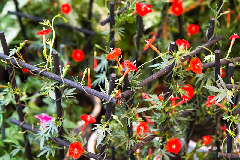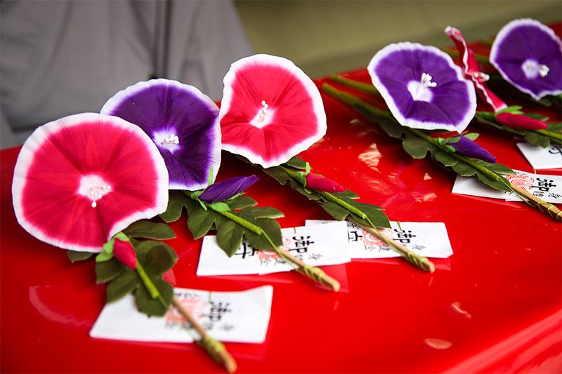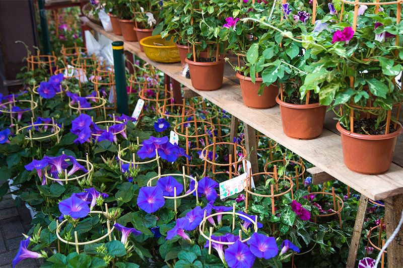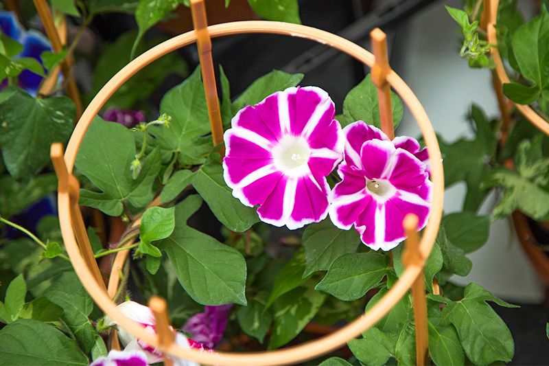 牽牛和江戸(東京舊稱——譯註)「結緣」,要追溯到江戸時代(1603~1867年)末期。當時牽牛花在御徒町一帶廣為栽種,花市繁花似錦;之後轉在入谷鬼子母神寺院內舉辦,並一直延續至今。