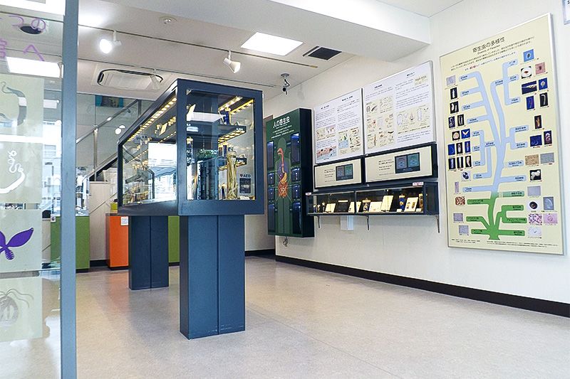 在該館也可看到來自各種各樣寄生蟲學者的劃分時代研究成果。特別是館內設置了與著名的山口左仲(1894~1976)相關的常設展覽室。山口博士專門研究感染日本野生動物的寄生蟲及寄生性甲殼類生物。該展覽室中的展品包括山口博士的論文、研究資料及其實際使用過的顯微鏡標本(用於顯微鏡觀察的標本)等。