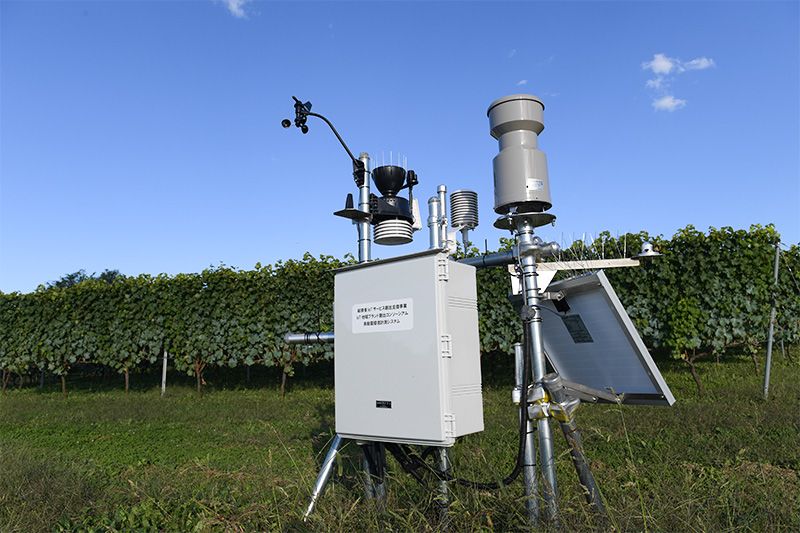 在位於「千曲川紅酒谷」東部的這個地區,新的酒莊和釀酒葡萄園如雨後春筍般不斷湧現。如今在上田市和東御市等10個葡萄園內都安裝了測量儀器。每隔10分鐘就會記錄一次氣溫、濕度、日照和雨量等氣象資料,並收集起來。