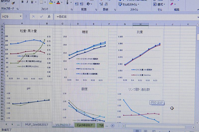 顯示葡萄成分變化的資料。要把這些資料和氣象、土壤資料結合起來加以解析