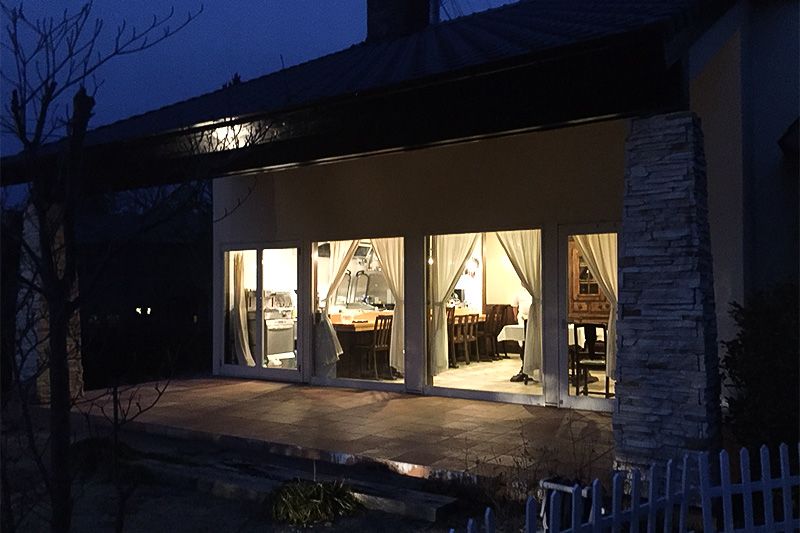 餐廳位於福島縣磐城市,從車站搭計程車,行駛約莫十分鐘,穿過狹窄的小巷後抵達一處住宅區,餐廳就座落在住宅區裡。店裡明亮的燈光從日落後昏暗的街色透出,舒緩了我原本有些提心吊膽,想著「這種地方是否真有店家」的情緒。
