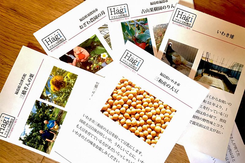 一整排洋洋灑灑列出的福島食材氣勢驚人,店家在簡章裡寫著下面這段文字:「對我來說,福島食材就是全世界最高級的名品。以料理連結福島的村落、山巒、大海。料理人守護福島的食材。」