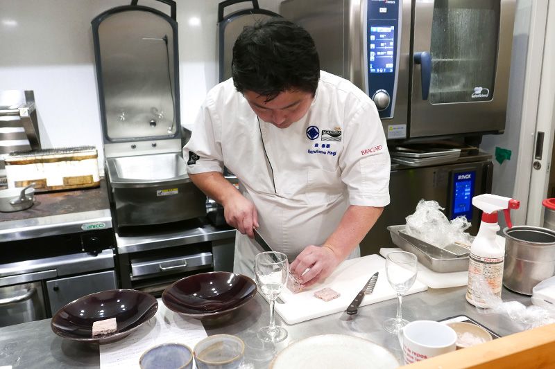 「Hagi法國餐廳」的店主,也是主廚的萩春朋在玄關處等我,他深深一鞠躬,說:「謝謝你不遠千里過來。」