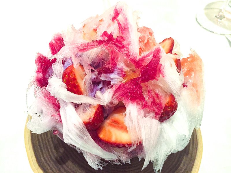 最後一道菜依然充滿感動,是天然冰塊與福島草莓製成的刨冰,這樣的甜點在其他地方可能很難品嚐到。刨冰不但外觀看起來很美,味道也很清爽,同時也是象徵著福島魅力的最後一道。