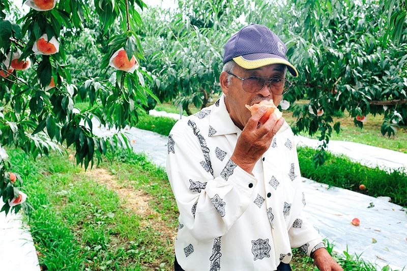 深色鏡片眼鏡加上花襯衫,談吐之間散發著aniki氣息的井砂善荣先生,是水蜜桃生產部會會長,開口第一句話就是:「謝謝你們來。」,讓抱著戰戰兢兢採訪心情的我們感到無比親切。