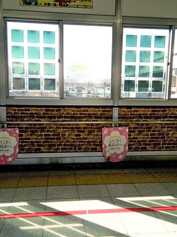 車站東口有個小圓環巴士站,巴士站對街是老舖百貨「中合福島店」,外牆正在進行大螢幕改裝工程,鷹架上方垂掛著大型布幔,「本地人幫本地人打氣,讓地方恢復元氣」的標語十分簡潔卻充滿力量。我內心想著,這七年來,雖然出事的核電廠跟管制區位在東邊海濱,但是包括西邊的會津地區和福島、郡山所在的中通區域,整個福島產業,大概都因為核電事故一起陪葬了。外人對於福島的觀感和誤解,甚至造成某些到外地避難的居民與學童遭到霸凌,福島人說不定是以在地人幫助在地人的精神覺悟,跟震災後的輻射以及因為輻射造成的「風評被害」,打了一場又一場的持久戰吧!