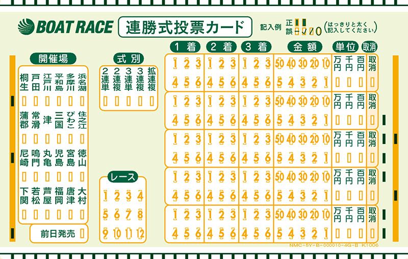賽艇複勝式標記卡。圖片提供:日本賽艇振興會(oat Race Promotion Association)