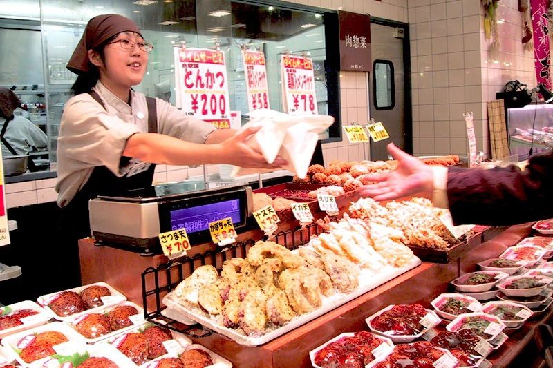 還有一點不可忽視,那就是超市出售的熟食。和便利商店不同,這些熟食都是在店內附設的廚房現做現賣的,這也是日本特色。從炸雞塊、可樂餅、牛蒡絲等家常菜,到烤雞肉串、泡菜等下酒菜等,品種多樣齊全;而且,很多熟食都會在關門前折價出售。另外營業到很晚的店家也不少,這也為職業女性帶來了很大的方便。