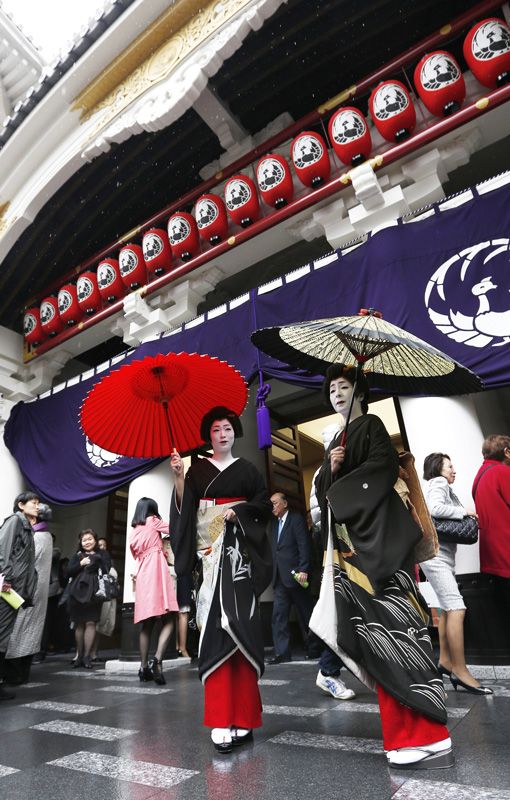 位於東京新橋的歌舞伎劇場前的新橋藝妓(圖片提供:時事通信社)