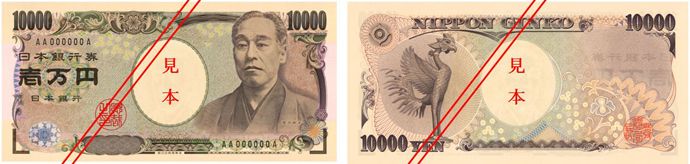 鈔票上印有微型「NIPPON GINKO」字樣。除了使用比以往更小的字體外,還在背景花紋(由精細的曲線等描繪的鈔票背景花紋)中新加入了大小不一的文字。