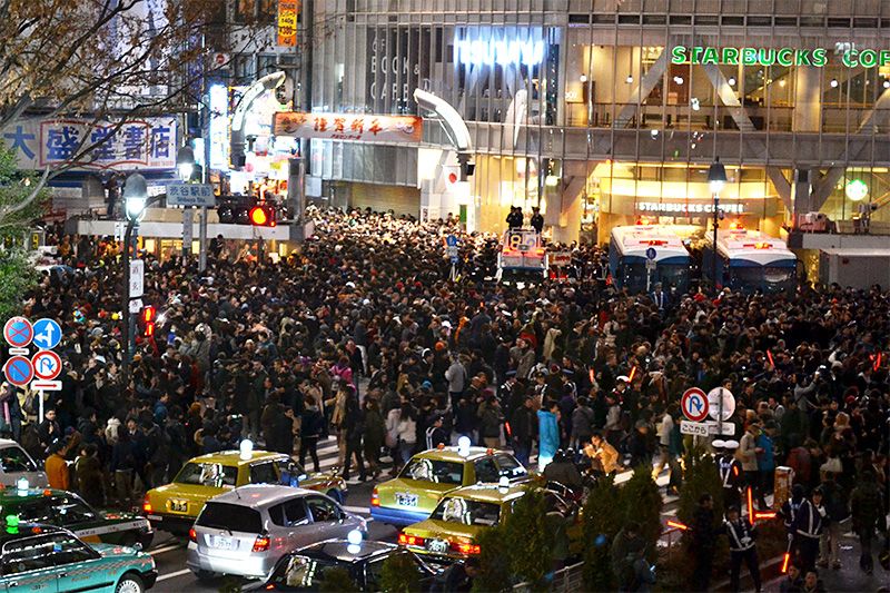 日本全國各地在年輕人間還盛行新年倒數計時活動。遊樂園、晴空塔、環球影城以至溫泉勝地等,倒數計時活動熱鬧非凡。特別是東京澀谷站前全向十字路口,人流如潮、紛亂擁擠,當局自2014年起採取了保安措施,以鎮暴與一般警察混合的數百名規模的警力在現場維持秩序。
