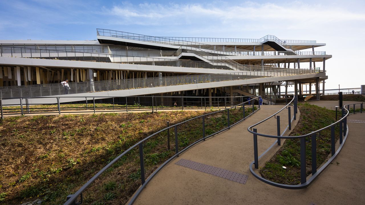該場館內由舉辦儀式、音樂、戲劇、文化育樂等活動的主舞台(約500座席)、可以表演日式「能樂」的小舞台、休息及餐飲休息區(約280座席)和日本傳統文化展區等,共四個部分組成。從地面一層延伸至屋頂的斜坡,形成了綠意盎然的空中平台,光線透過玻璃牆照進內部。這座場館正面朝向自古就是日本對外交流門戶的大阪灣,讓人感覺心曠神怡,想必在此一定會激發出更多新的國際交流。