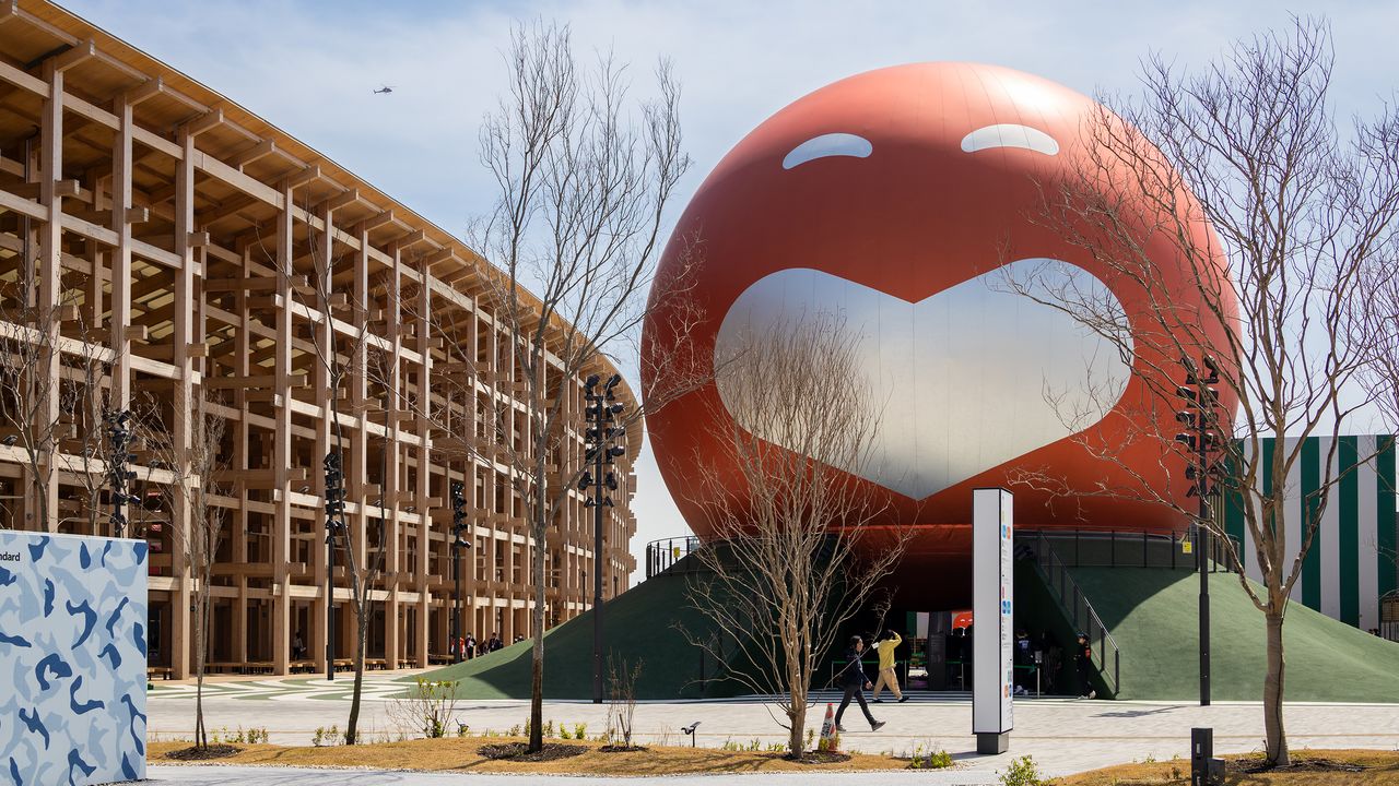 由日本最大的搞笑藝人經紀公司為中心的吉本興業控股公司參展。穿過主入口,會見到一個漂浮在山丘上的笑臉球體「(Tama)」,進入後在「明日廣場」可以觀賞漫才、短劇和各種有趣的活動。