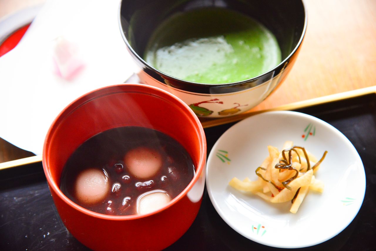 「抹茶配日式點心」和「紅豆年糕湯配開胃鹹菜」,均為500日圓(含稅)