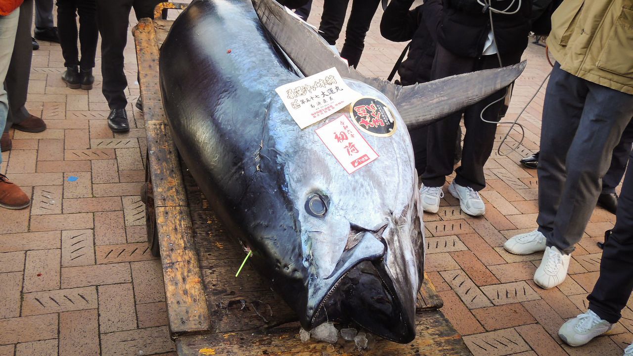 日本第一鮪魚爭奪戰約在一分鐘內便分出勝負。來自大間的黑鮪魚(238公斤)以1億1424萬日圓高價售出,是去年最高價3604萬的三倍以上,也是睽違四年再度超越1億日圓。市場內買氣熱絡,得標者為大型批發商「山幸」,將提供給其合作業者ONODERA GROUP所經營的「銀座小野寺」壽司餐廳使用。