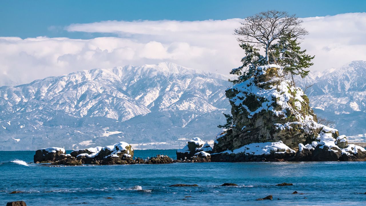 標題圖片:富山縣天原海濱著名的「女岩」,背景為立山山脈(PIXTA)