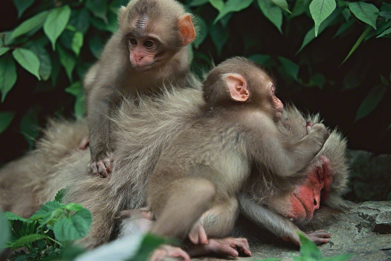 草木萌生,食物豐富的春天,是雪猴的出生季節。一隻母猴一般每隔一年生一隻小猴。剛生下來的猴寶寶全身毛絨絨的,而且眼睛也睜得大大的,無論去哪裏都離不開母親。不過,出生一個星期之後,牠們就馬上搖搖晃晃地開始四肢行走了。步履蹣跚地離開母親,摔倒了還會放聲哭叫。帶著滿目親情愛意的母親聞聲趕來,把小寶寶領回去——看到這樣的場景,你的臉上會情不自禁地泛出微笑。