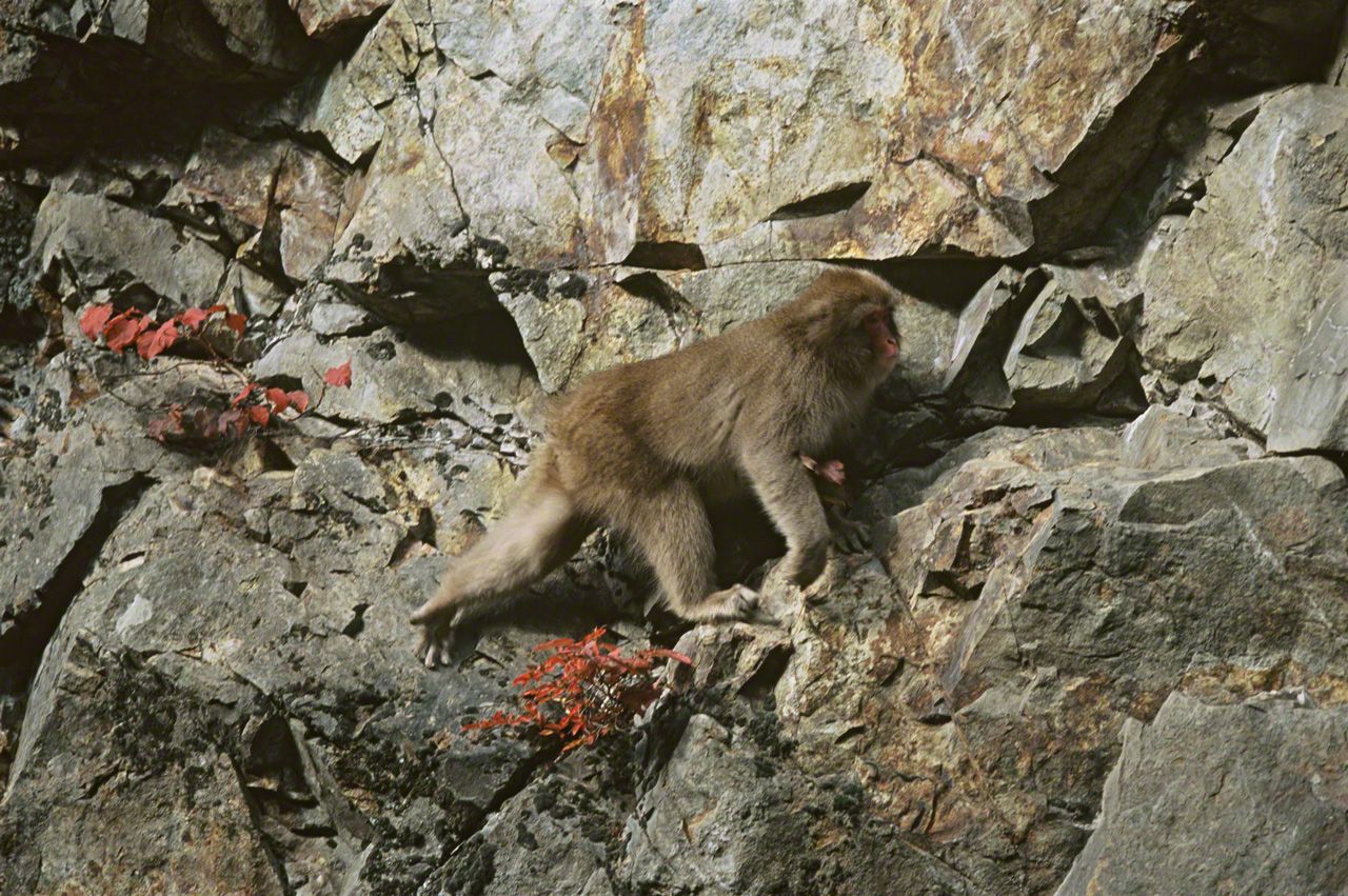 迎來豐收之秋,猴子們開始了過冬的準備。牠們奔忙在森林,尋覓收集栗子、山葡萄等富有營養的果實。漫山遍野層林盡染的時節,也是這些生靈的戀愛季節。面孔、屁股越發通紅的雄猴,拼命地去尋找獵獲心儀的對象。