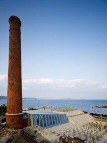 犬島的藝術工程項目——“精煉所”,一個在保存銅冶煉所遺址的基礎上建成的美術館。在這裡,既有的煙囪、礦渣磚瓦、陽光和地熱等自然能源得到充分利用。(照片提供:直島福武美術館財團)