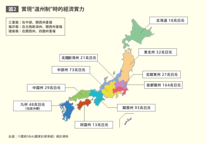 明治政府當初斷然實行的一大行政改革,是把當時近300個藩統合為70個府縣,可謂一大英明決斷。要知道,當時東京至大阪的往來是靠徒步行走,即便是飛毛腿,單程也要花費14天時間。但是,在信息通訊手段如此發達的今天,東京至大阪的主要交通工具新幹線不到3小時就可連接兩地,然而政治體系卻還停留在100年前,這無論如何思考都是很奇怪的。而且,各地區即使具有地方自治權,但具備充分的經濟規模的,只要看看圖1,就十分清楚了。關西州和中國(日本本州島西部的中國地區)州、中部州、九州州,其經濟規模都分別遠遠超過了加拿大、韓國和丹麥。