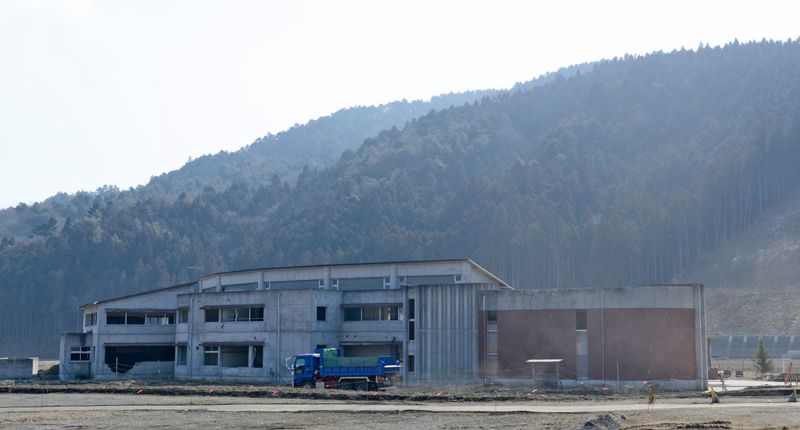 石卷市:自動傾卸卡車(Dump Truck)穿梭在共有84名兒童和教員遇難的大川小學遺址上