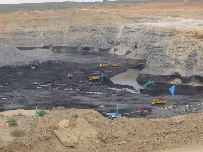 陝西省神木縣的露天煤礦。這裏的煤層位於地表下約70m的深度,人們將煤層上方的砂土全部清理之後進行露天開採。開採1年後,必須履行修復植被的義務(2011年9月8日,窪田攝影)