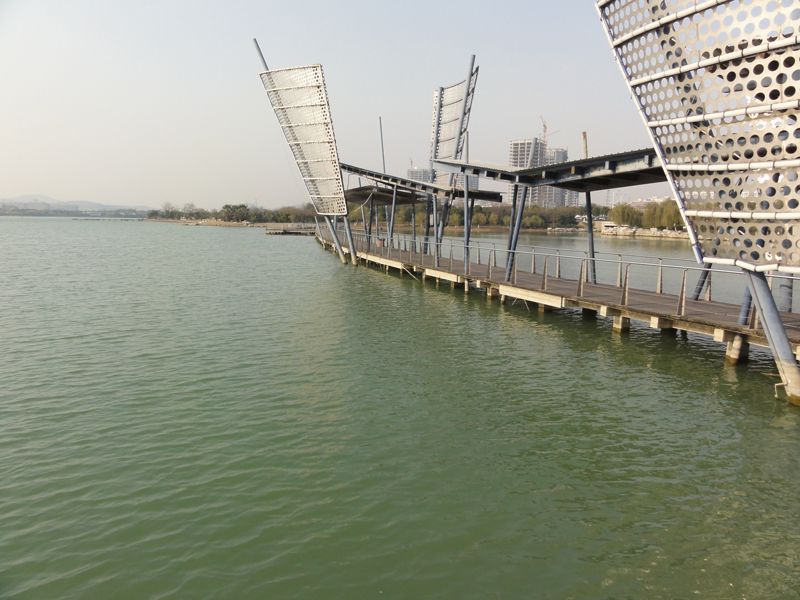 蠡湖是與無錫市區相接的太湖內湖,實施生態恢復行動後,這裏建成了一個公園。2008年11月到訪此地時惡臭熏天,而本次重遊故地,已完全嗅不到異味了(2011年12月22日,窪田攝影)