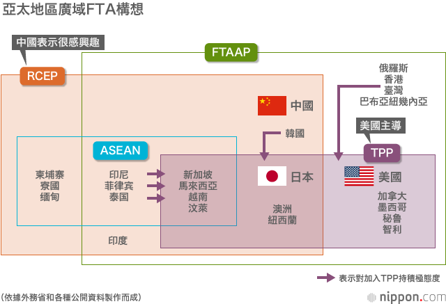 談到亞太地區的廣域FTA和經濟合作協定(EPA),除了TPP外,還有已在東協(ASEAN)主導下展開談判、據傳中國很感興趣的東亞區域全面經濟夥伴關係協定(RCEP)。由於TPP的前景已經變得撲朔迷離,所以人們越來越關注作為替代框架的RCEP,這是一個事實。如果RCEP得以實現,那麼美國將被排除在外。由此產生的弊害無法估量。