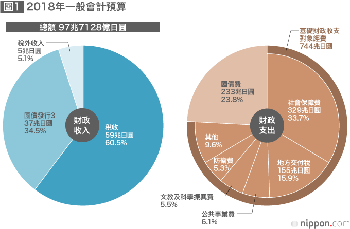 報紙等大眾媒體的報導往往只是關注一般會計預算中「社會保障相關費用」的增加情況,但中央和地方負擔的「社會保障給付費」的增加更為重要。2018年預算,社會保障相關費用達到了歷史最高水準的33兆日圓,引發熱議,而由中央和地方政府經費及保險費負擔的社會保障給付費則達到了約120兆日圓。最近幾年,這項支出依靠的是保險費收入(約60兆日圓)、國庫負擔(約33兆日圓)和地方負擔(約10兆日圓),在中央一般會計預算案中引人關注的社會保障相關費用基本上相當於社會保障給付費中的國債負擔,只是社會保障給付費的一部分。