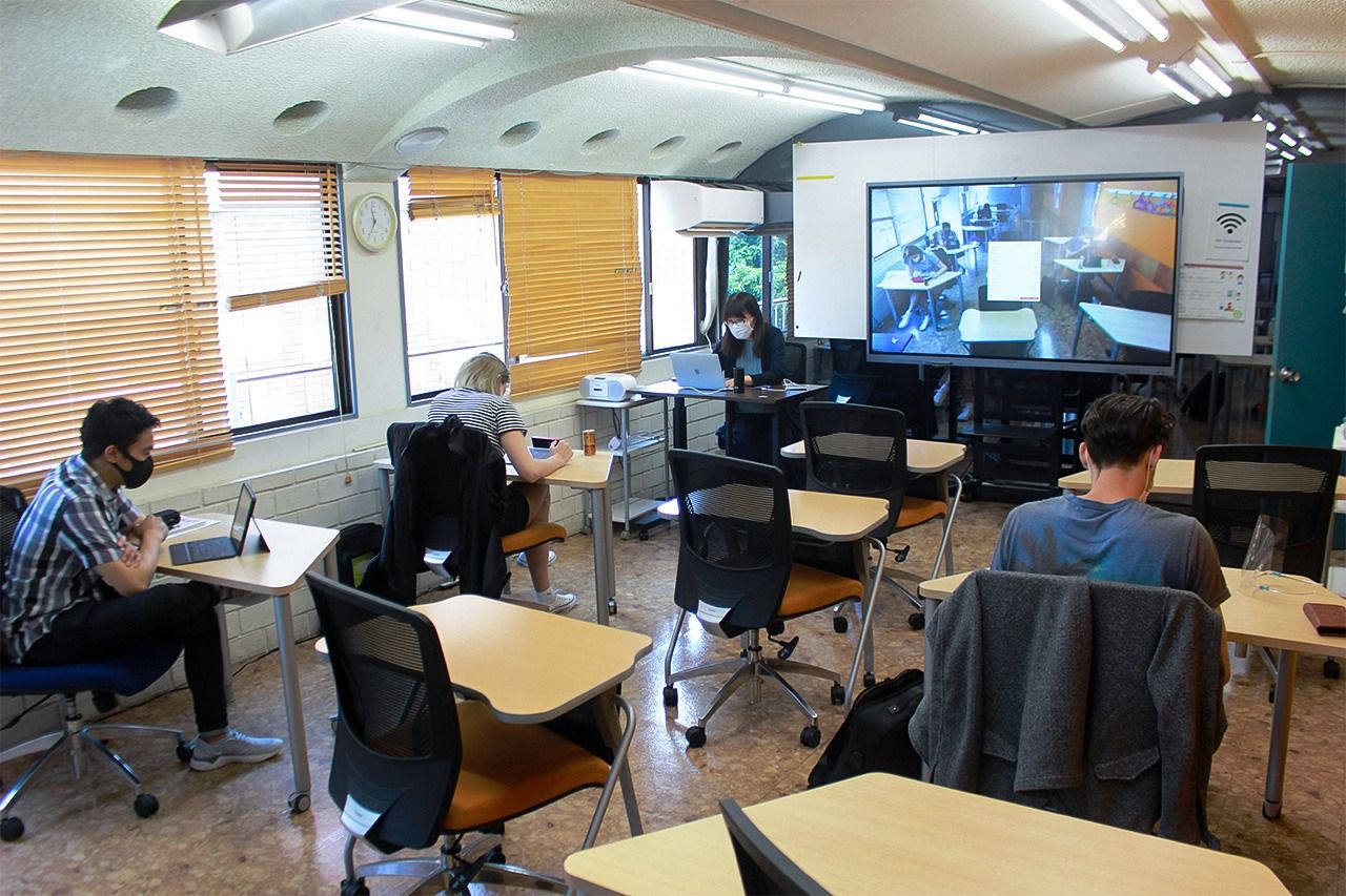 位於東京新宿區的KAI日語學校的授課也以線上為主。這天,共有12名學生的班級只有3個人來學校上課(筆者攝影)