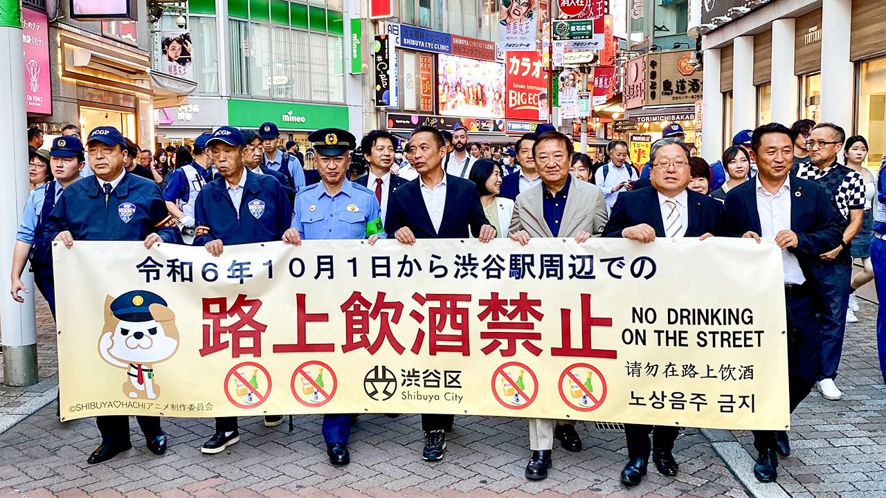 為維護市容環境,澀谷區政府於2023年9月提出「杜絕街頭飲酒不良行為」,派保全人員每晚在JR澀谷站周邊巡邏,規勸民眾不要在街頭飲酒。然而,基於舊條例的請求式勸阻收效甚微,澀谷區政府不得不修訂條例。隨著新條例生效,巡邏工作也進一步加強。為使外國遊客遵守條例,巡邏隊還配備會說英文、法文、中文等外語的人員。