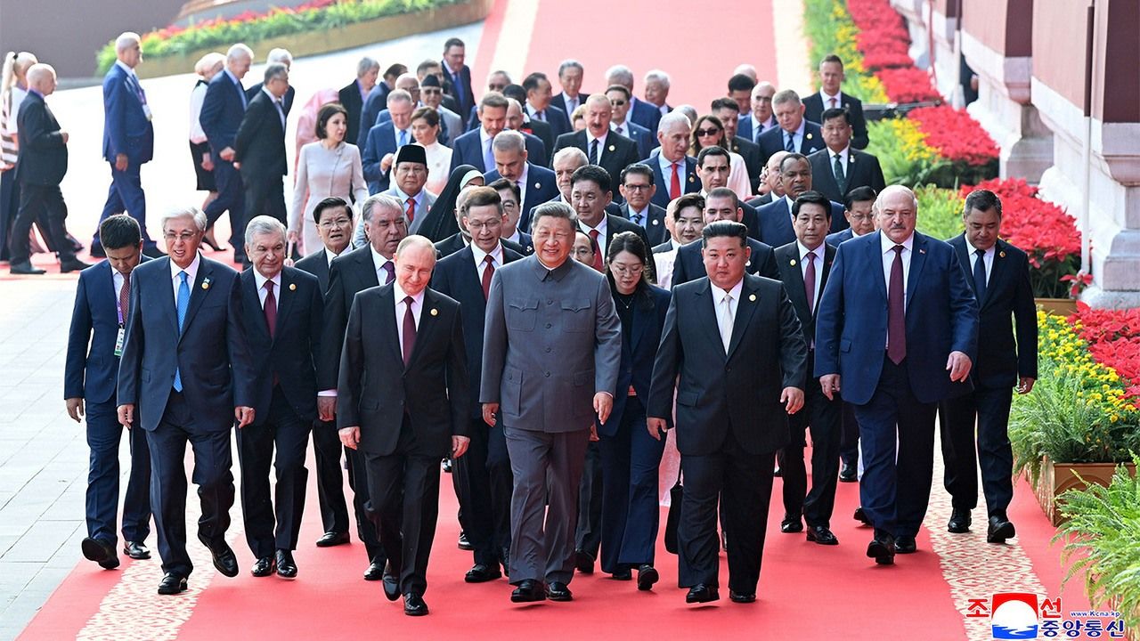 標題圖片:在「中國人民抗日戰爭暨世界反法西斯戰爭勝利80週年紀念活動」上,習近平國家主席(中央)與俄羅斯總統普丁(左側)、北韓勞動黨總書記金正恩(右側)等人步行前往北京天安門廣場。2025年9月3日(朝鮮通信社/共同通信Images)